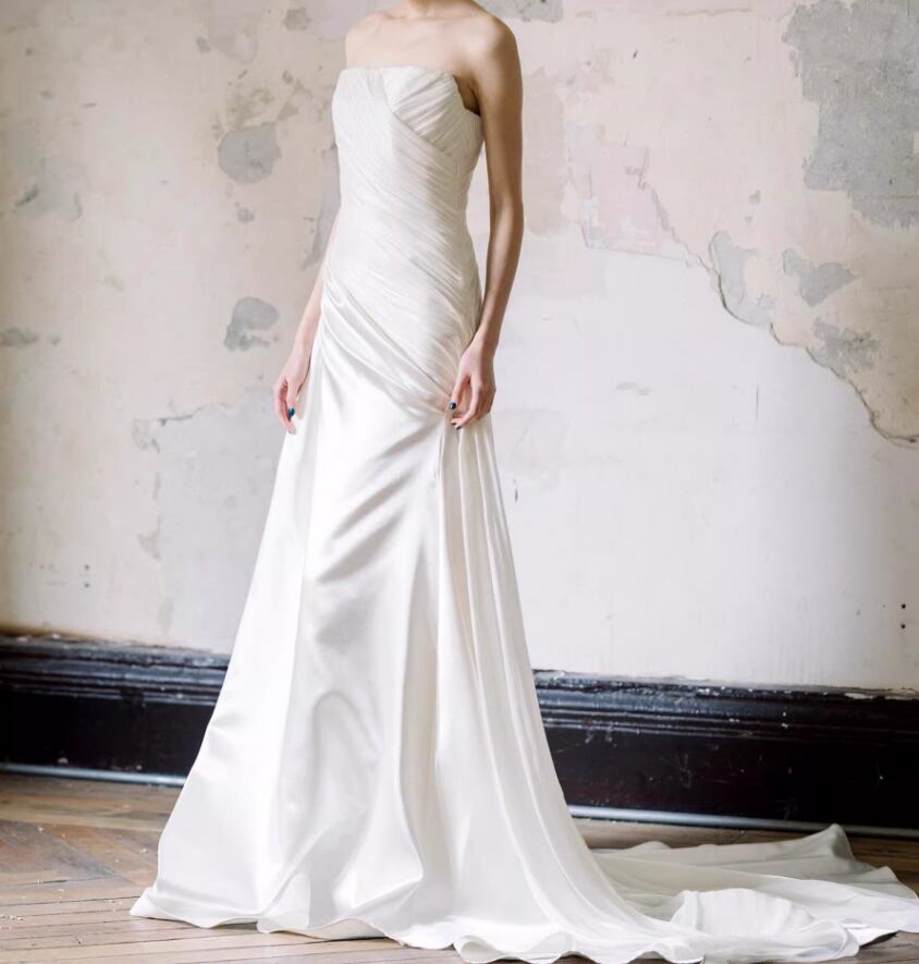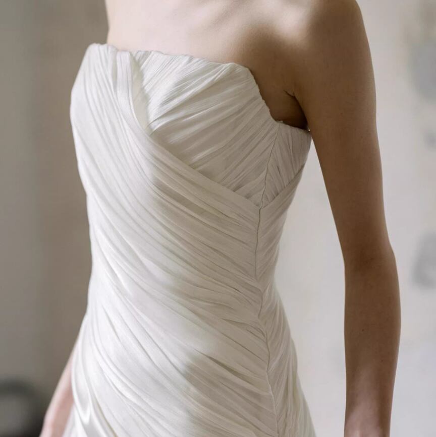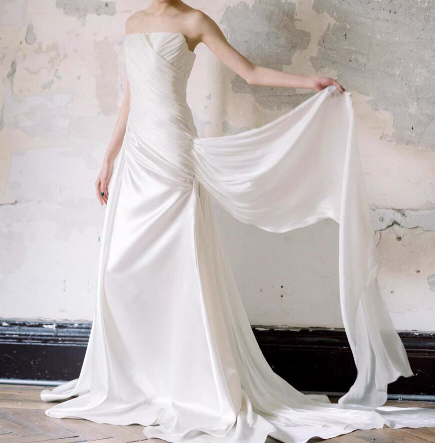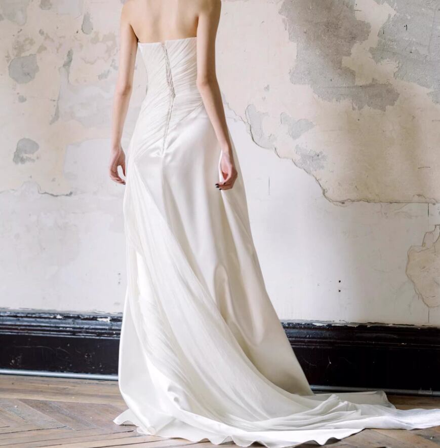 フランス風 ウェディングドレス ベアトップ ハンドドレープ 優雅なシルエット 編み上げ 拳式/前撮り