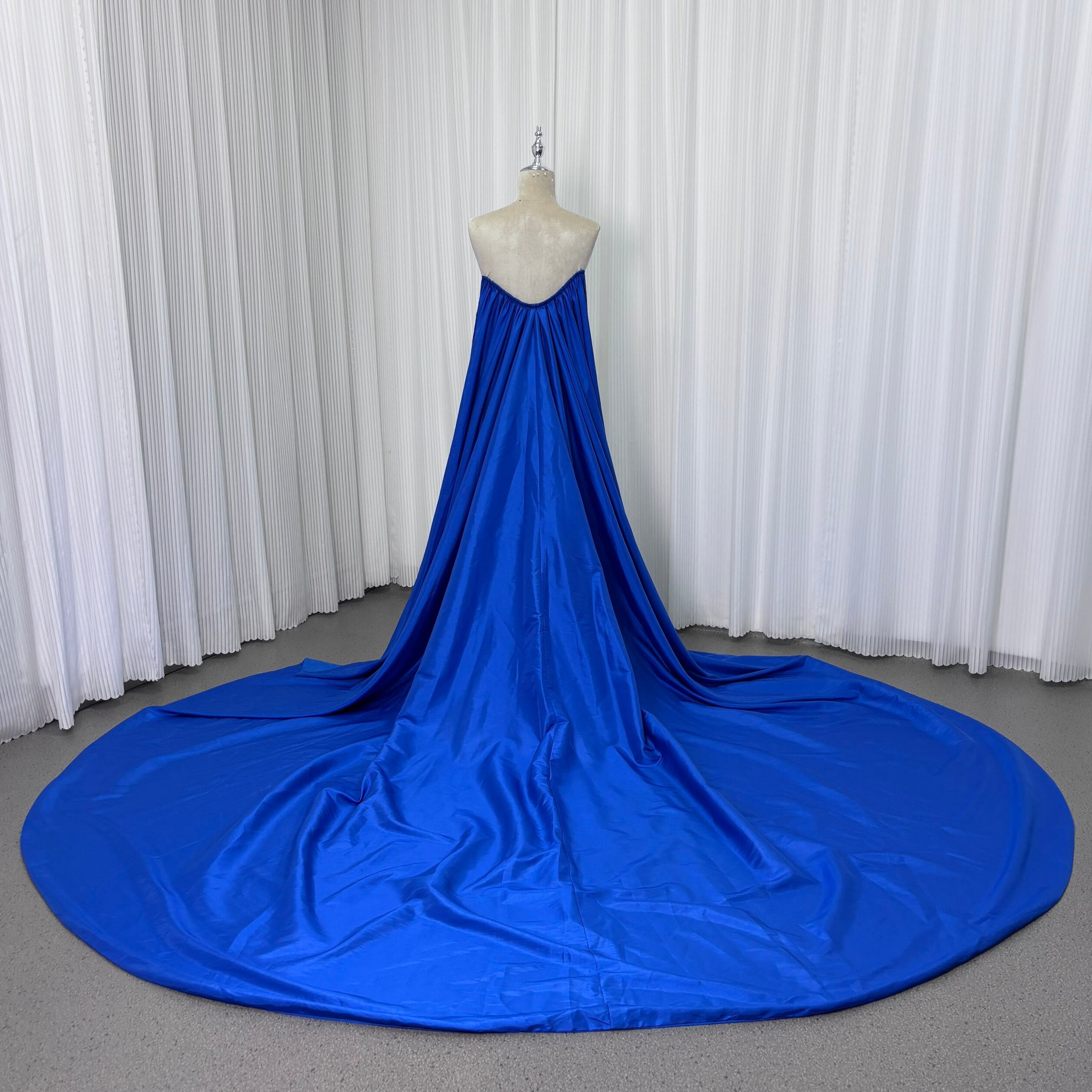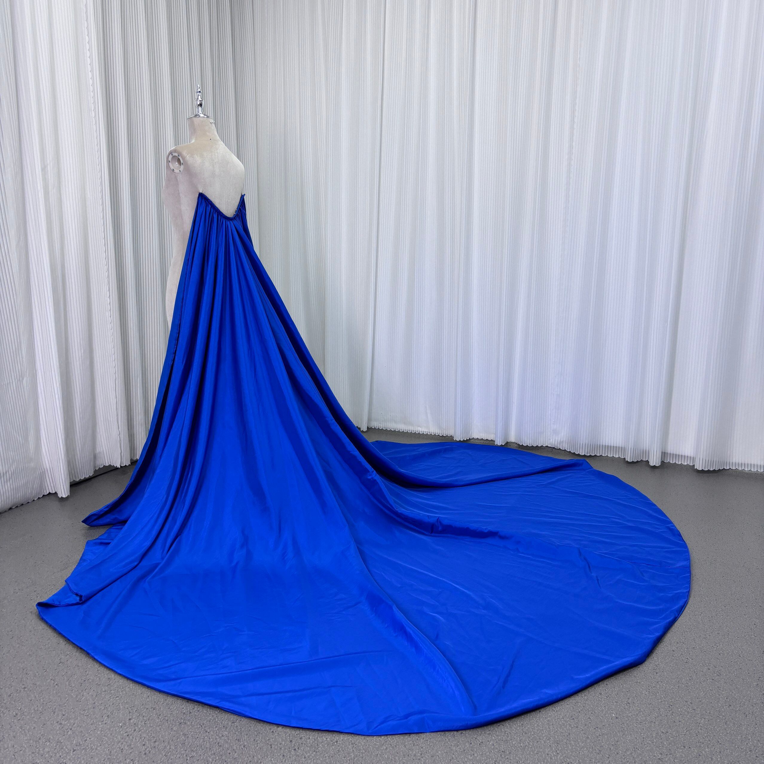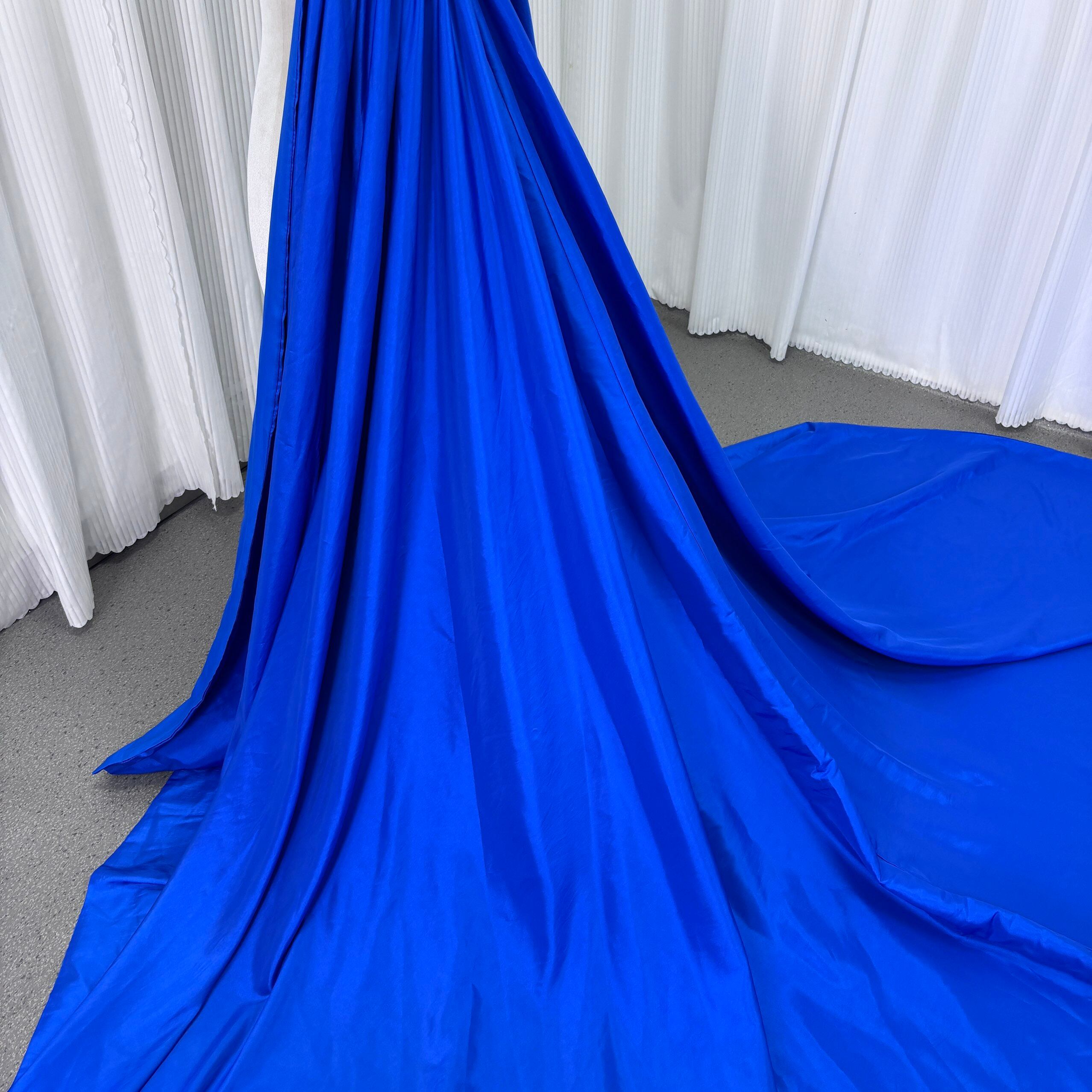 ジュエルブルー シルクタフタ ロングトレーン 披露宴 前撮り 抜群のおしゃれ見え