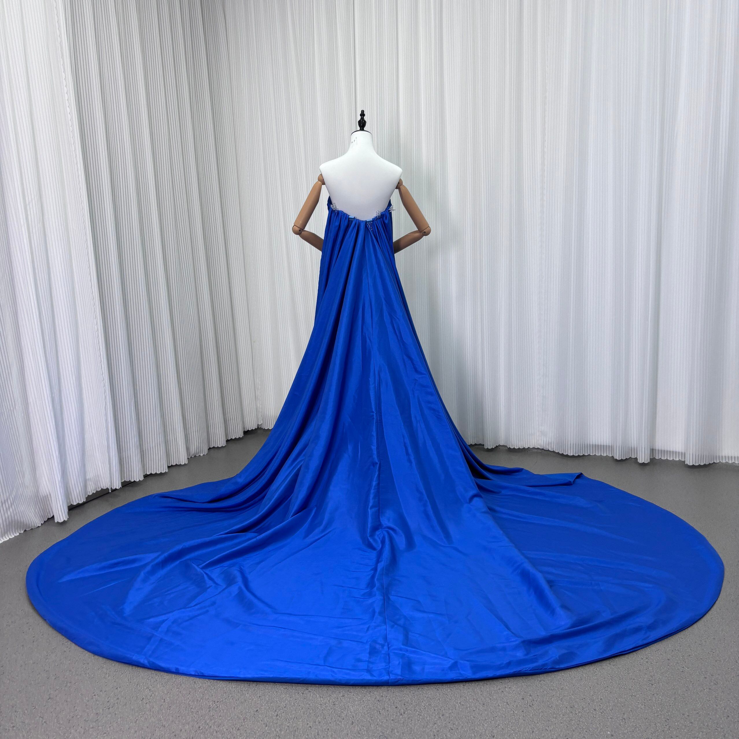 カラードレス ジュエルブルー ベアトップ 胸元フリル マーメイドライン シルクタフタ ロングトレーン 編み上げ 演奏会
