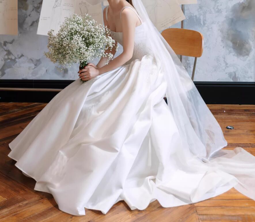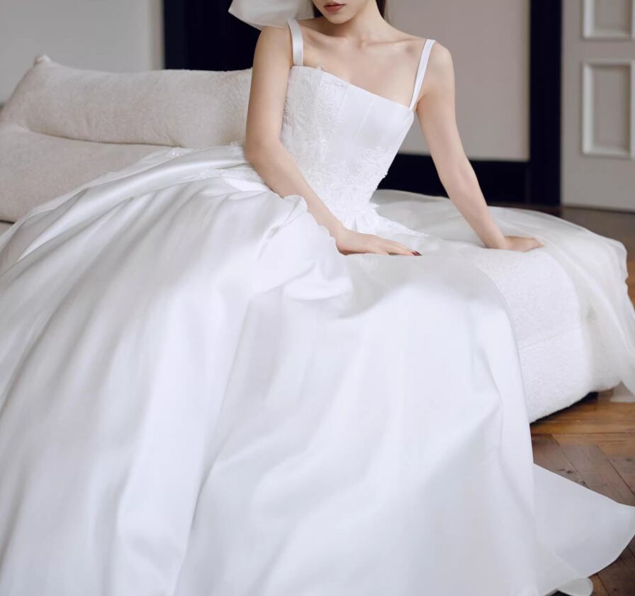 フランス風 ウェディングドレス キャミソール シルクタフタ キラキラ光る刺繍 細見えシルエット 結婚式