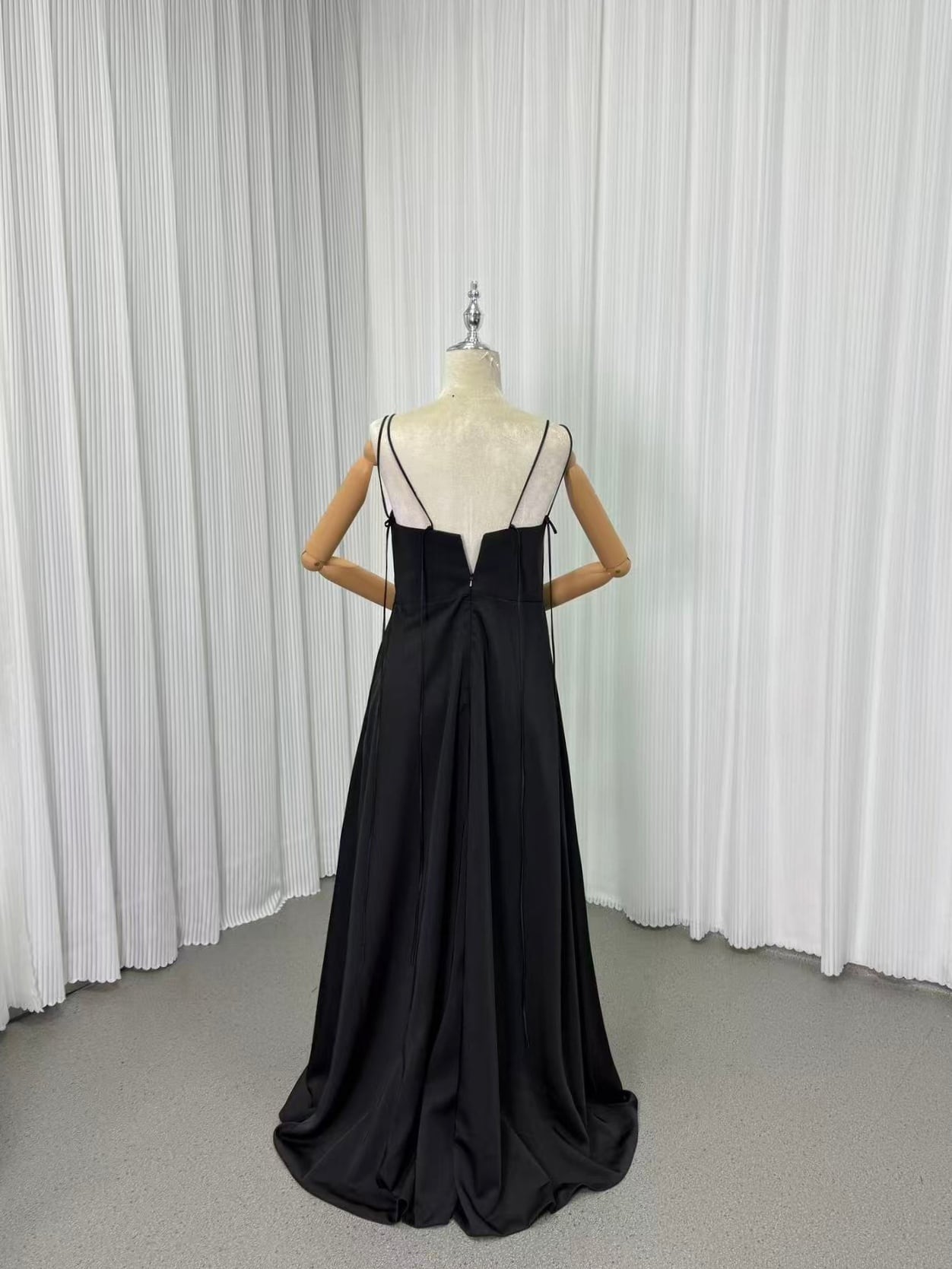 パーティードレス キャミソール ブラック 高級イタリアサテン 細見えシルエット ファスナー 二次会