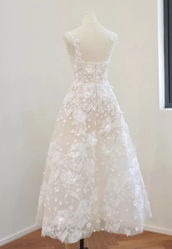 ウェディングドレス ベアトップ キャミソール 贅沢な小花総レース スレンダーライン クラシカル 披露宴