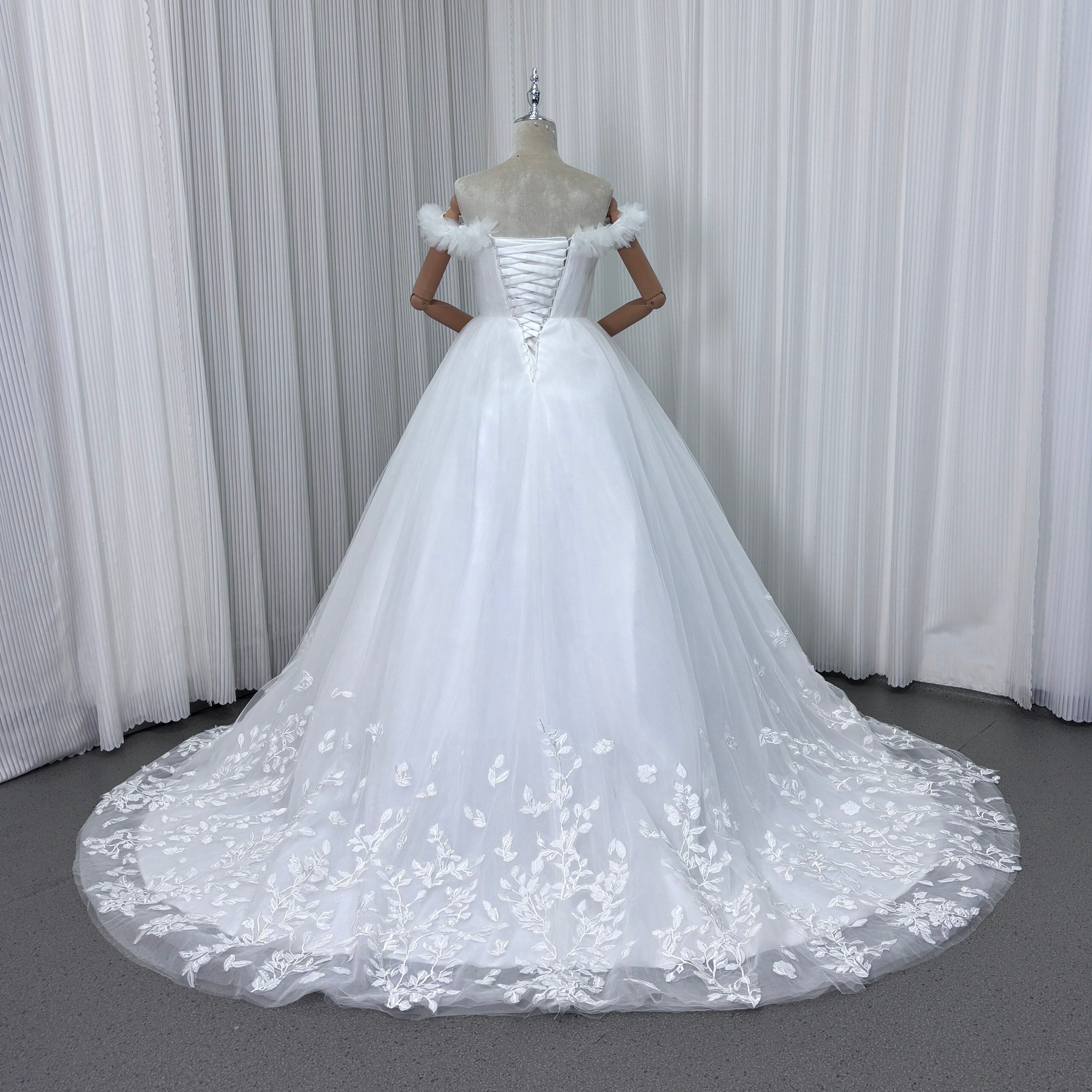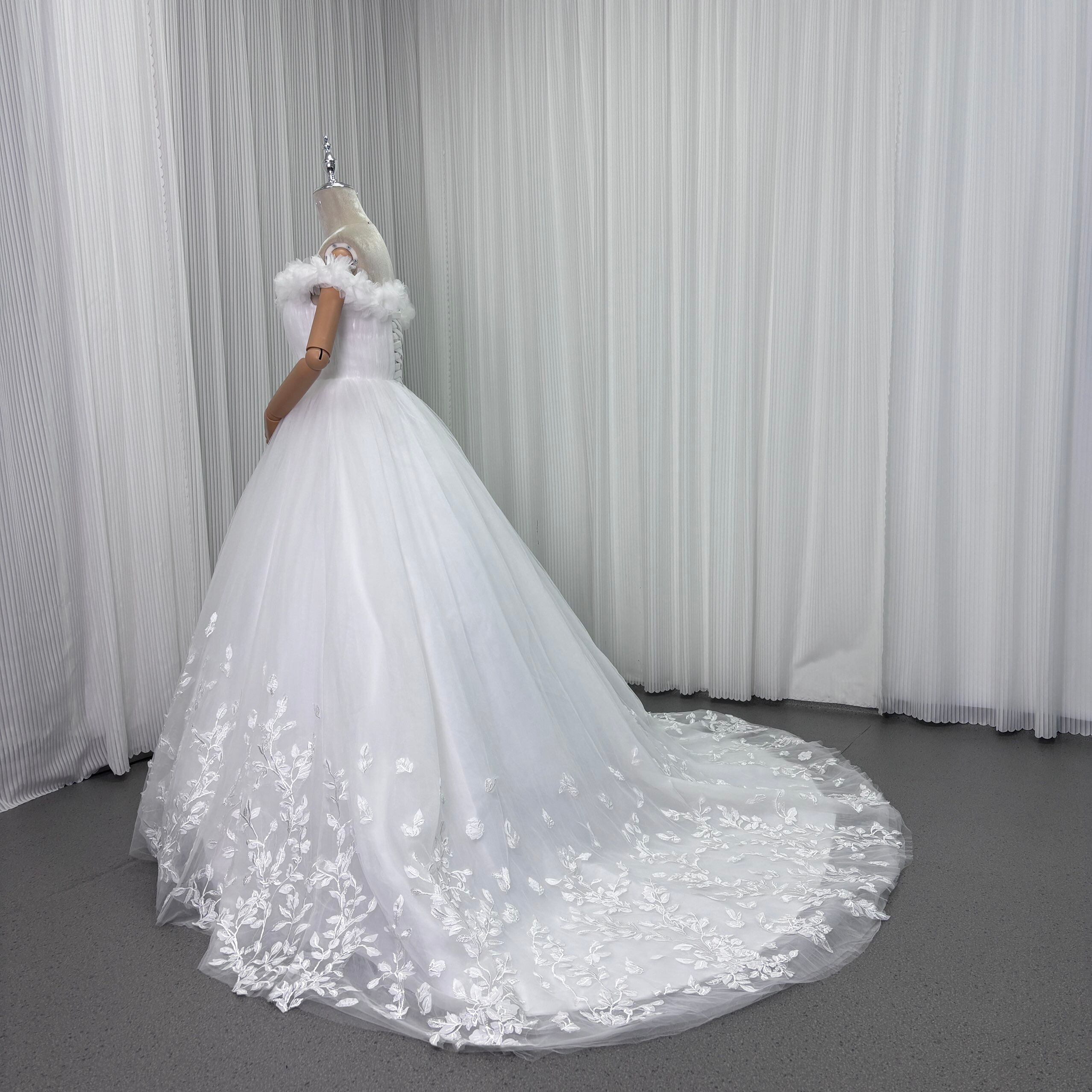 ウェディングドレス オフショルダー リーフ刺繍 華やかなトレーン プリンセスライン 拳式/前撮り