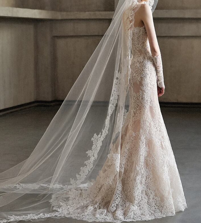 フランス風 ウエディングドレス ベアトップ マーメイドライン 贅沢な小花総レース 短トレーン 華やか 拳式/前撮り