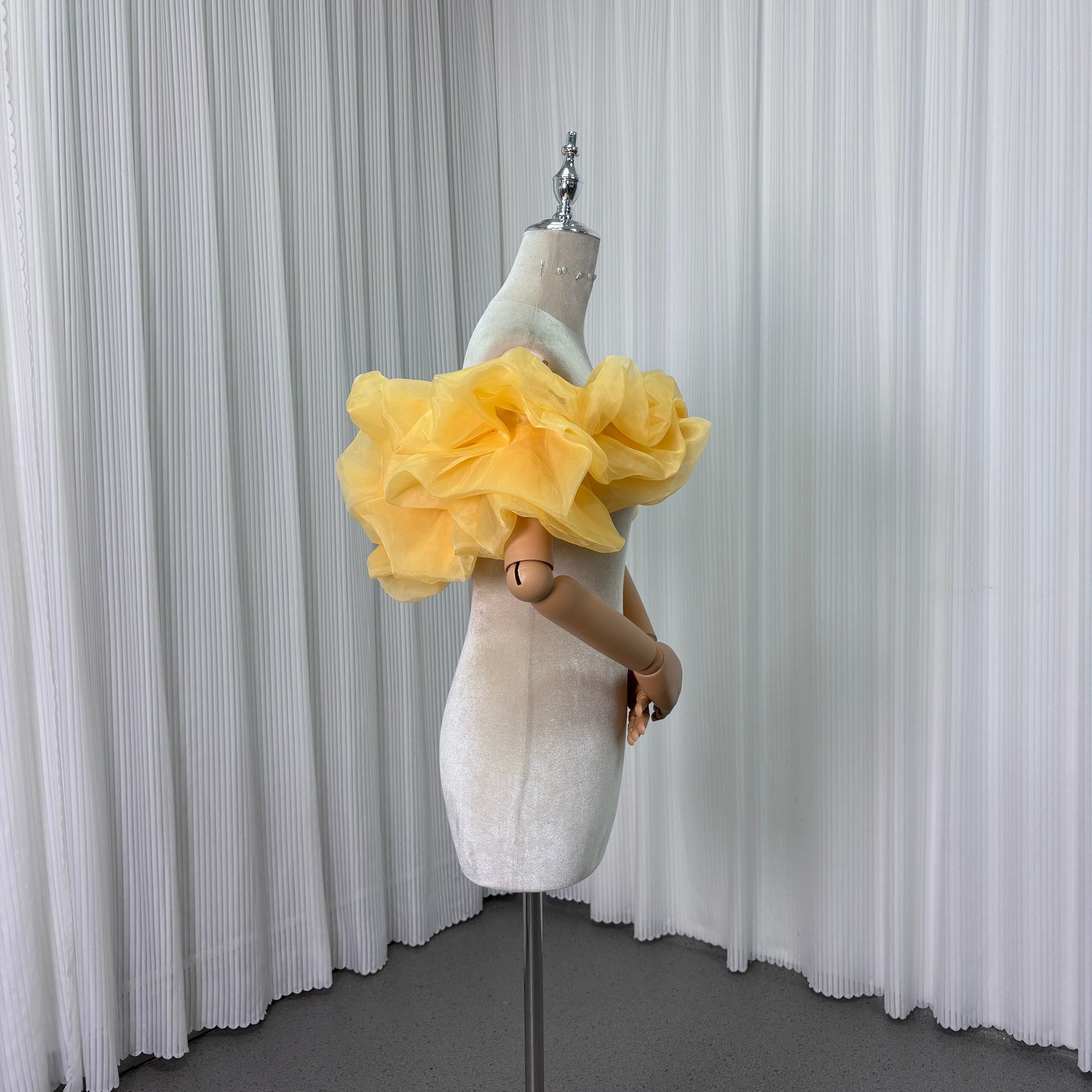 取り外しオフショルダー 上質オーガンジー ラッフルフリル ストレッチ フランス風 披露宴